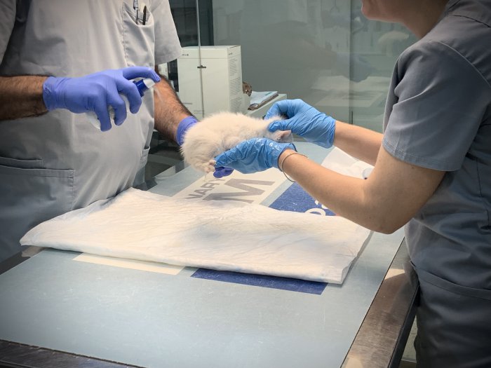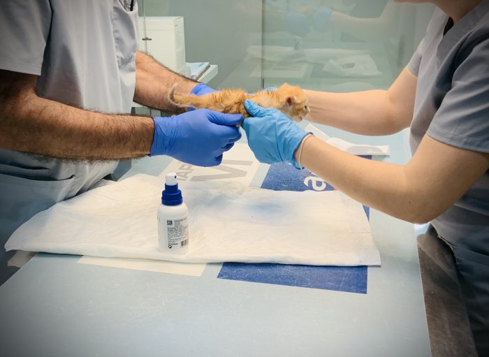 We have found homes for Isabel, Geraint, and Carmen, but we are still looking for homes for Joaquin (orange male) and Liz (white female). Baby Carmen has been adopted by one of our fourth-year students and she is keeping the name. I believe the new mom for Baby Isabel is keeping the name also.